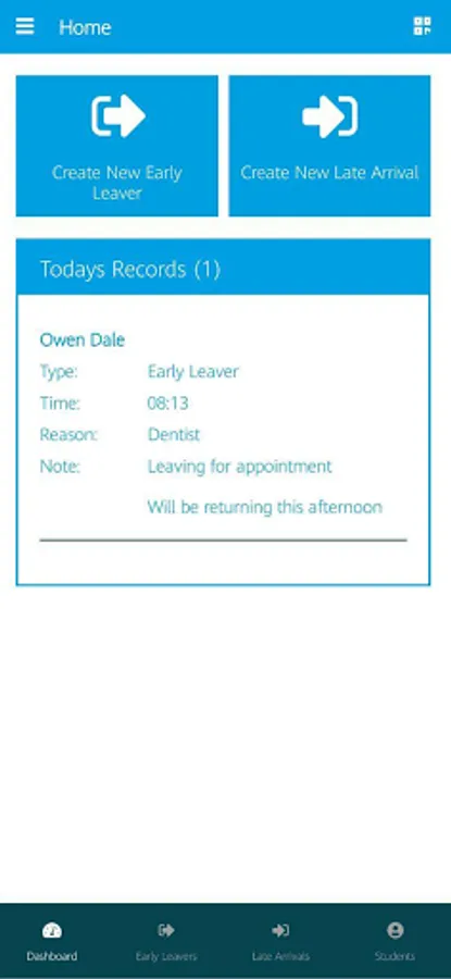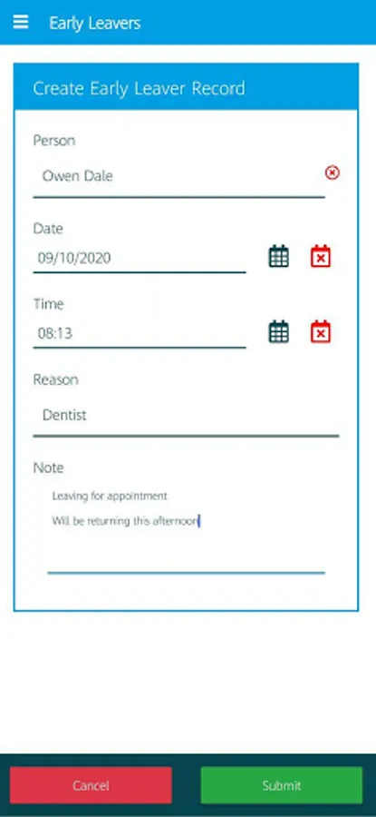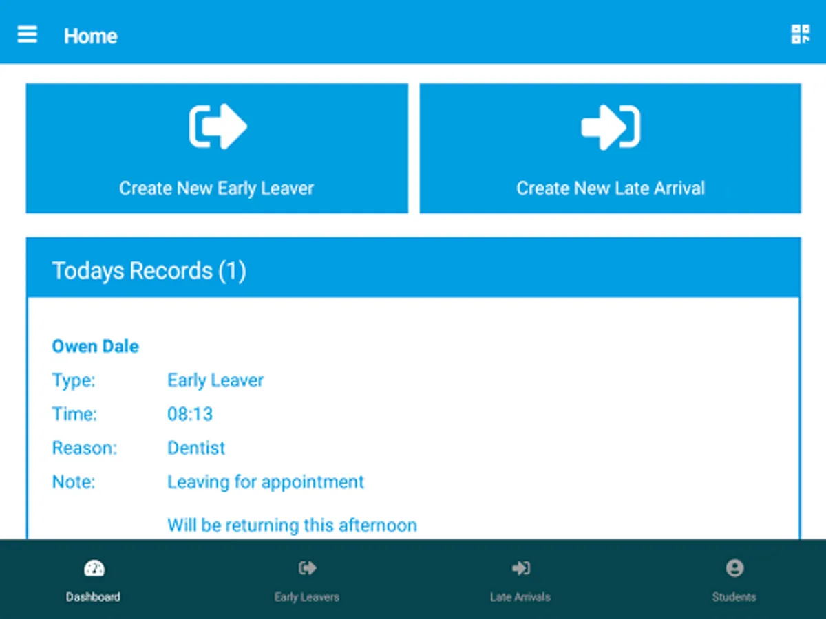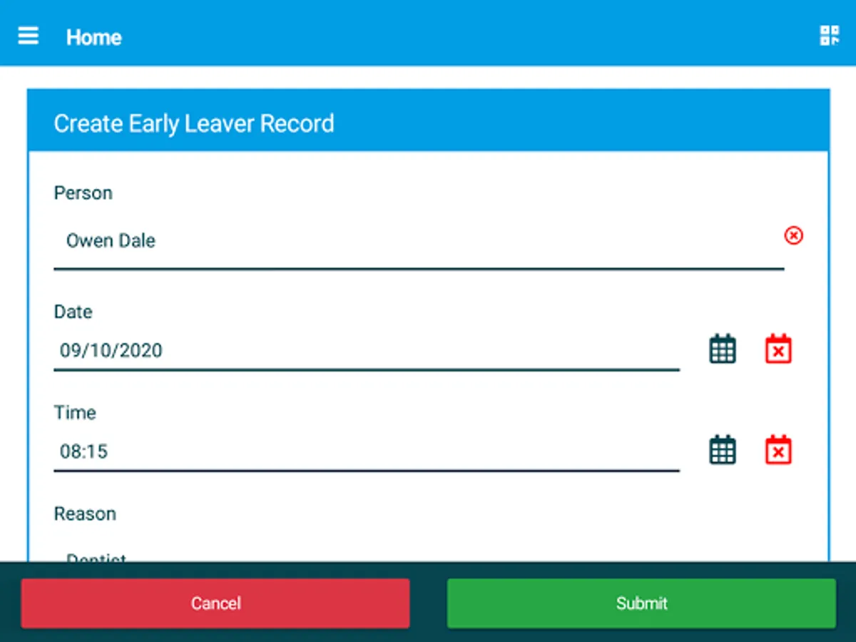 Allows Early Leaver and Late Arrival Records to be created for Students along with the ability to view Historical Early Leaver and Late Arrival records for Students