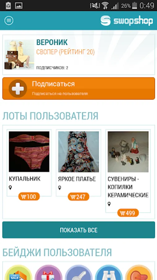The application replicates the main site http://swopshop.com and adapts the interface for a comfortable program separate from your phone.