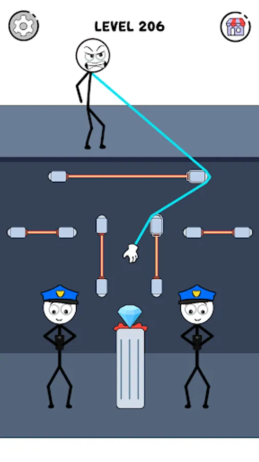 With each passing level, the brain teaser presents different challenges and the naughty Stickman Thief becomes vulnerable to getting caught in the Thief Troll IQ Games. You can help the Thief Troll solve the riddles to pass a level. If you are looking for a challenging and relaxing Brain Teaser Thief Master, the naughty Stickman Thief Escape Games can make your day. Once you start playing the Thief Puzzle Escape Games, you will get to know how unstoppable this naughty Thief Stickman or Thief Troll is. Stickman Thief Master will go to any extent in the Thief Games or IQ Games. All the naughty Thief Stickman has to do is stretch a hand and pick his target item without failing. You have to drag his stretchy hand of the Thief Troll and make sure to avoid the obstacles to pass a level.