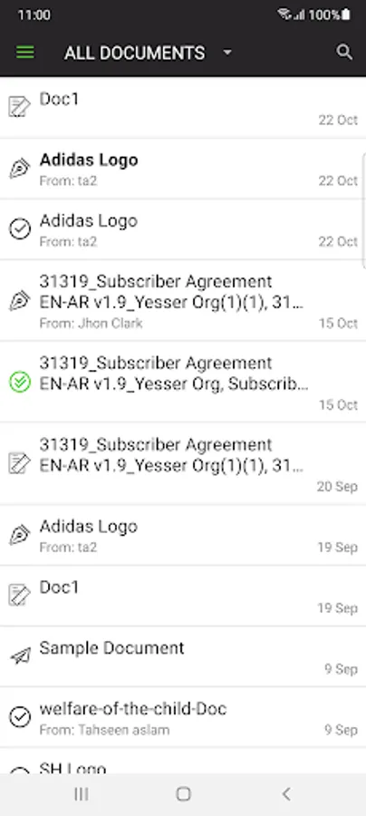 • Document workflow and signing status is available with real-time traceability