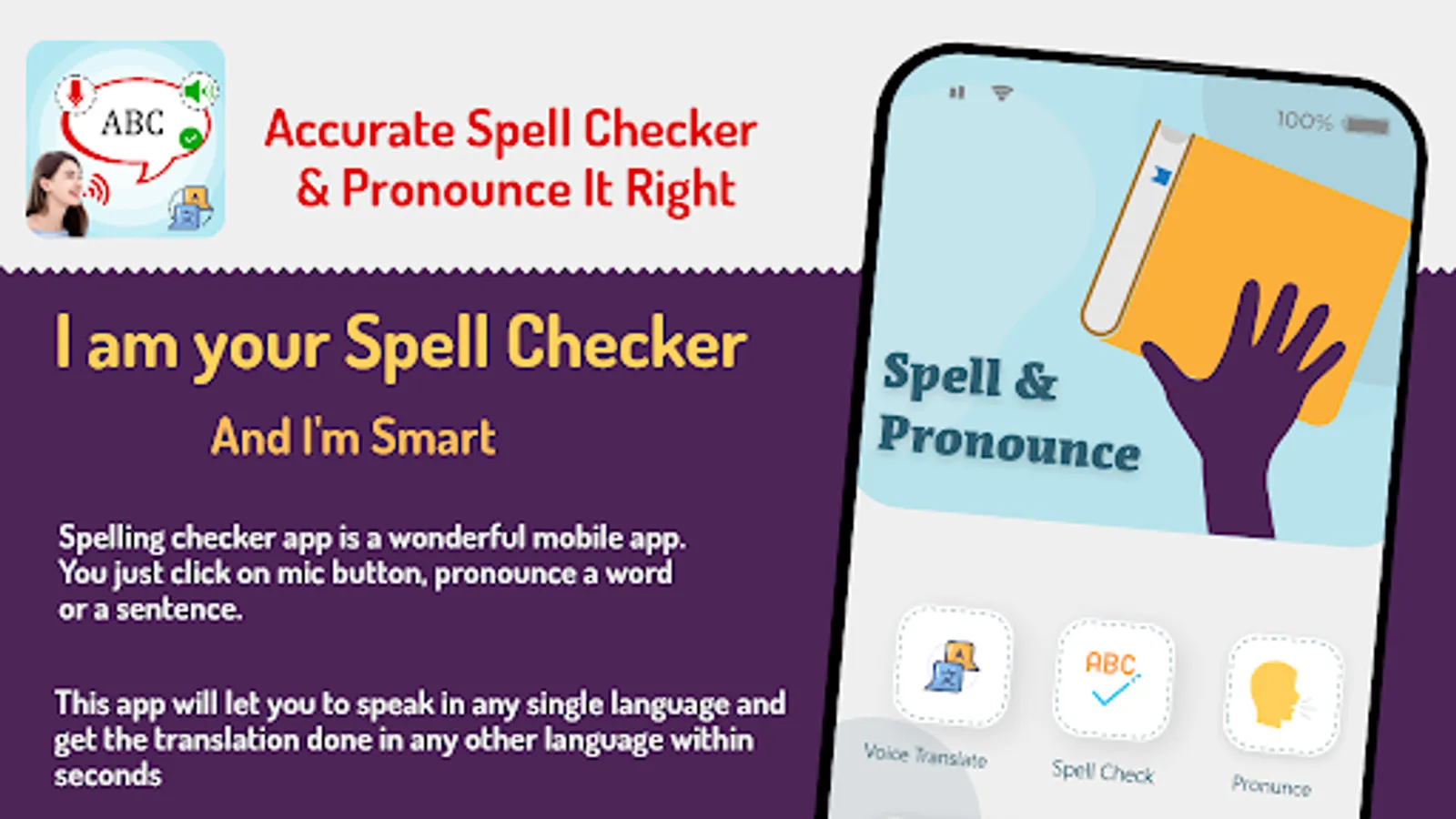 Spell and Pronounce is very unique and handy application which shows user the correct spelling of desired words and also accurate pronunciation of that word in 10 different languages. The basic purpose of this app is to convert speech to text and show it to user in no time, and user can share this on different Social Media.