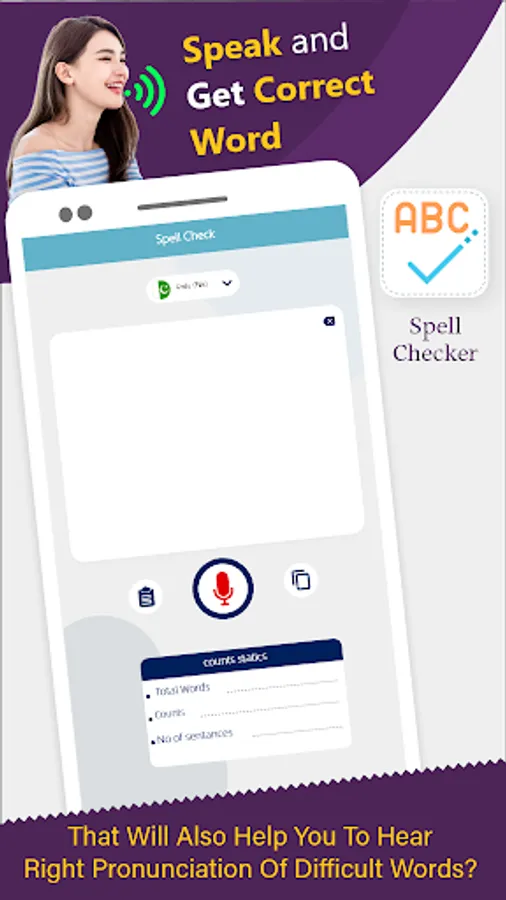 Spell and pronounce – correct spelling checker app is a wonderful mobile app. You just click on mic button, pronounce a word or a sentence. Speech to text recognition feature will just recognise your voice & write it in text label. You can also paste copied text in text label to pronounce it as well. You will now click on speech button to use text to speech option to hear correct pronunciation of that word/sentence. You can copy text from & paste it where you want. You can also share it on different social platforms. You can check correct spellings of a word/sentence by speaking a word. Here, use of speech to text option will help you to read correct spellings of that word/sentence. In this case, spell and pronounce app will work as correct spelling checker tool. You can also copy that text & also can share it on different social media sites. Clear option will help you to repeat or start new, keep enjoying spelling checker and correct the words whenever you need. It’s a time saving app as well. If someone is in hurry & is unable to type with speed, he just speak & will find written text to send it to anyone. In this case, our app will work like a voice typing keyboard. This is very helpful in improving accent and pronunciation as well. Moreover, this app can be used worldwide. Multiple language support will help you to use spell and pronounce in English, French, German, Hindi, Spanish, Chinese, Japanese, Korean, Arabic & Urdu. You don’t need to download separate German spell checker and word pronunciation app or Spanish spell checker and word pronunciation app or more apps. You just change the language & set desired language to use it in the same app.