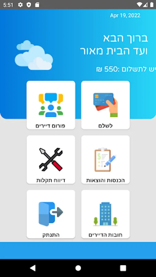An interface for management and streamlining of the building committee, whether in the tenants' chat or a broad view of expenses and income, as well as control of tenants' debts.