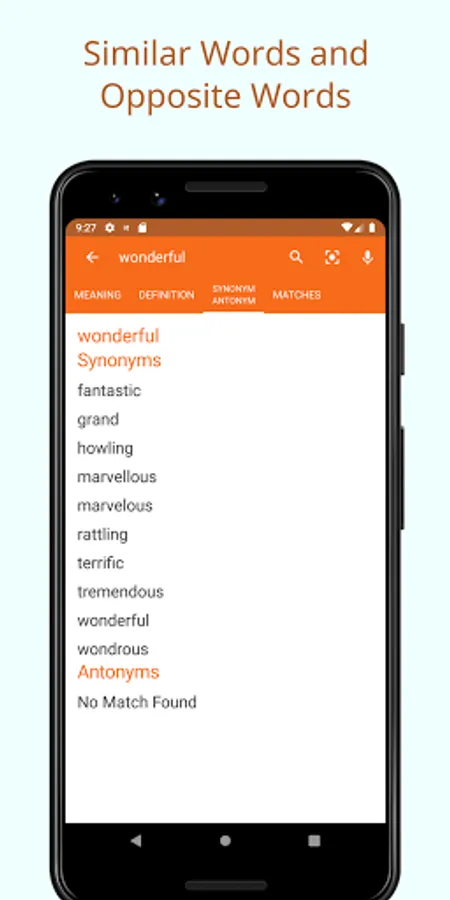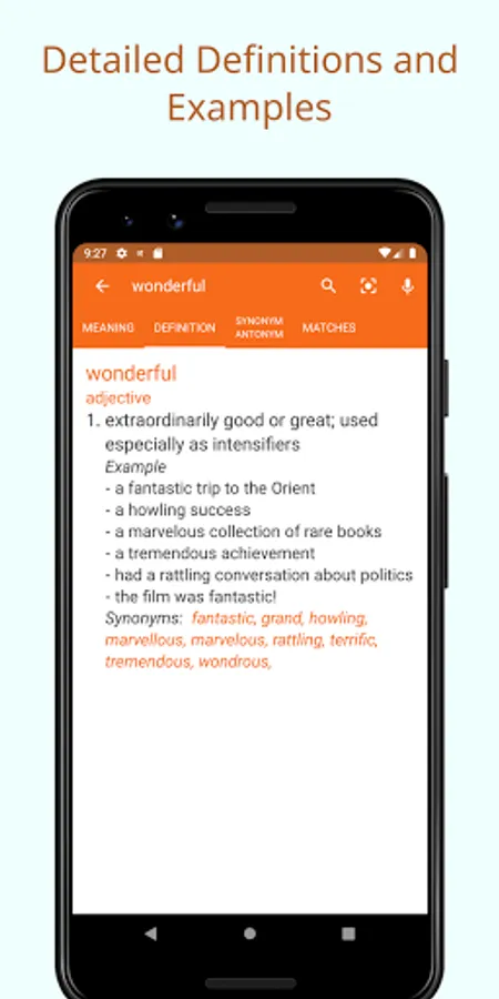 Any tap on the meanings will take you to the reverse lookup any of the meanings. This helps you in understanding more of each word shown by presenting this unique cross-search feature.