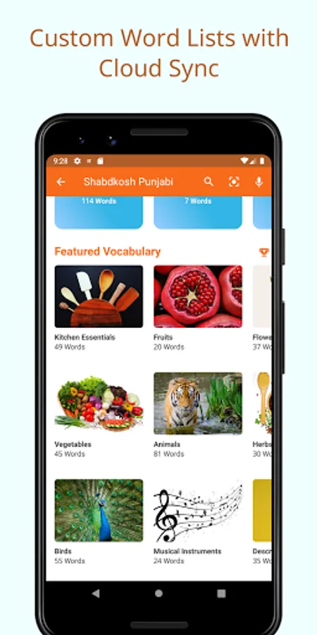 Start typing Punjabi words using Punjabi keyboard, or type Punjabi words in English and have the SHABDKOSH app suggest you words even when you are not typing in Punjabi! Tap any suggestion to get the English translation, meanings and spoken audio pronunciations. Tap the star icon to save the word for future reference.