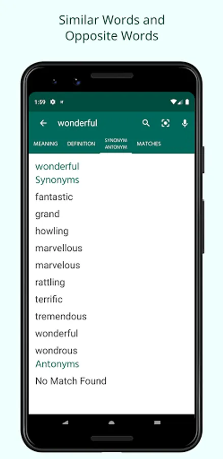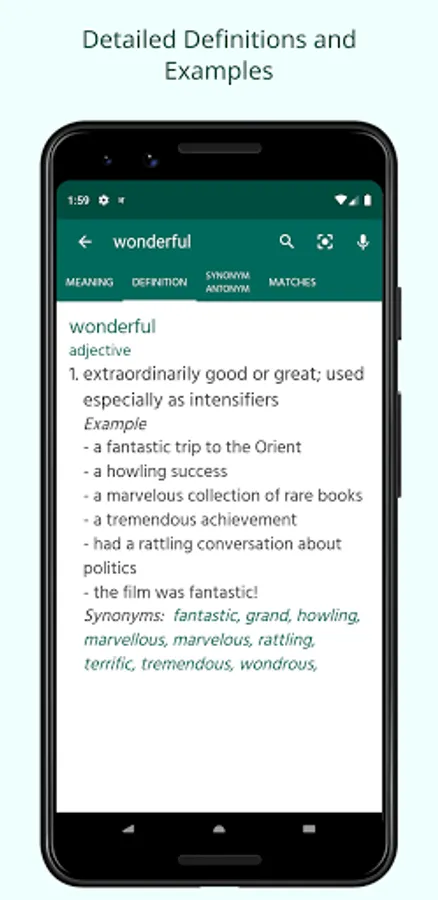 Any tap on the meanings will take you to the reverse lookup any of the meanings. This helps you in understanding more of each word shown by presenting this unique cross-search feature.