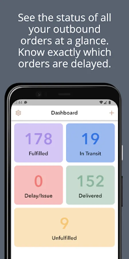 Easily see how may orders are in transit, delayed, delivered and unfulfilled on your dashboard.