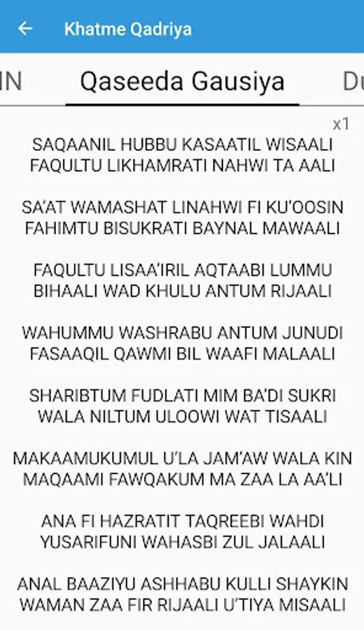 Khatme Qadriya app for all followers of Gause Azam Hazrat Abdul Qadir Gilani Radiallahuanhu All wazaifs in arabic and English transliteration including Surah Yaseen and Qasida Gausia.