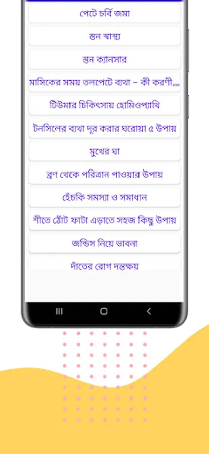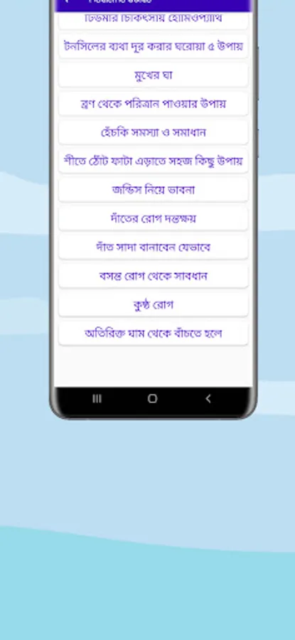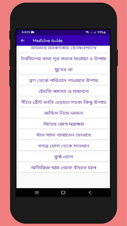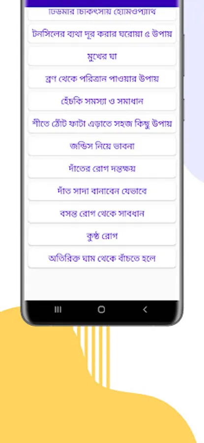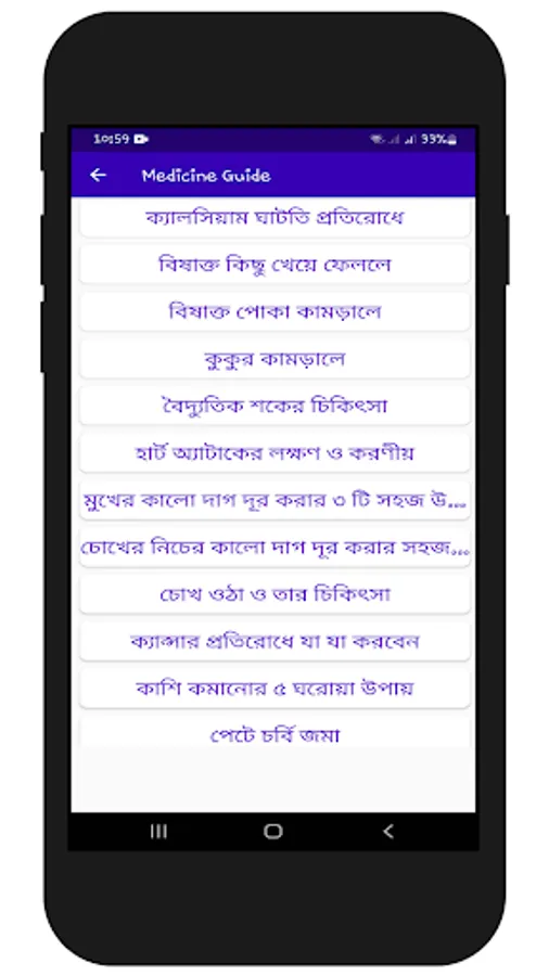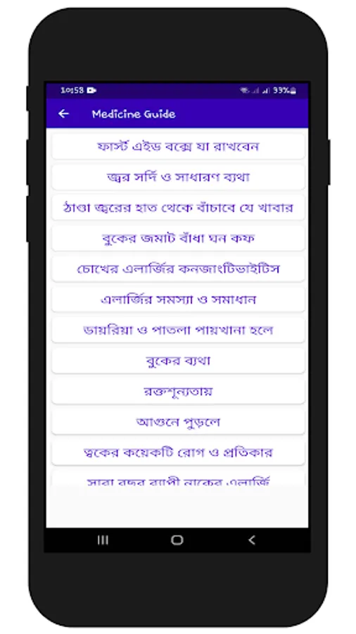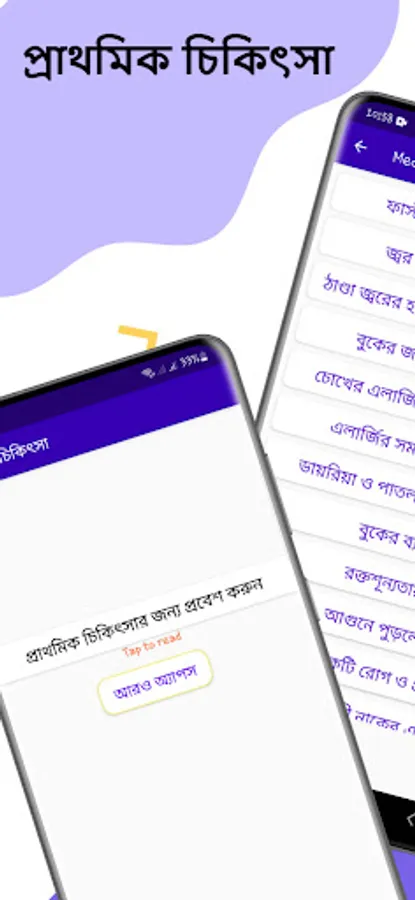 এই অ্যাপটিতে যে সব রোগের প্রাথমিক চিকিৎসা সম্পর্কে জানা যাবেঃ-