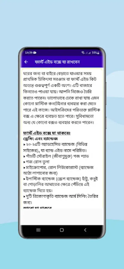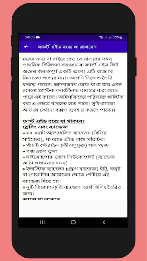 প্রাথমিক চিকিৎসা নামক অ্যাপটিতে বিভিন্ন রোগের উপসর্গ অর্থাৎ রোগের লক্ষণ ও প্রতিকার বা রোগ হলে প্রাথমিক পর্যায়ে কি কি চিকিৎসা নেয়া প্রয়োজন তা নিয়ে বিস্তারিত আলোচনা করা হয়েছে।