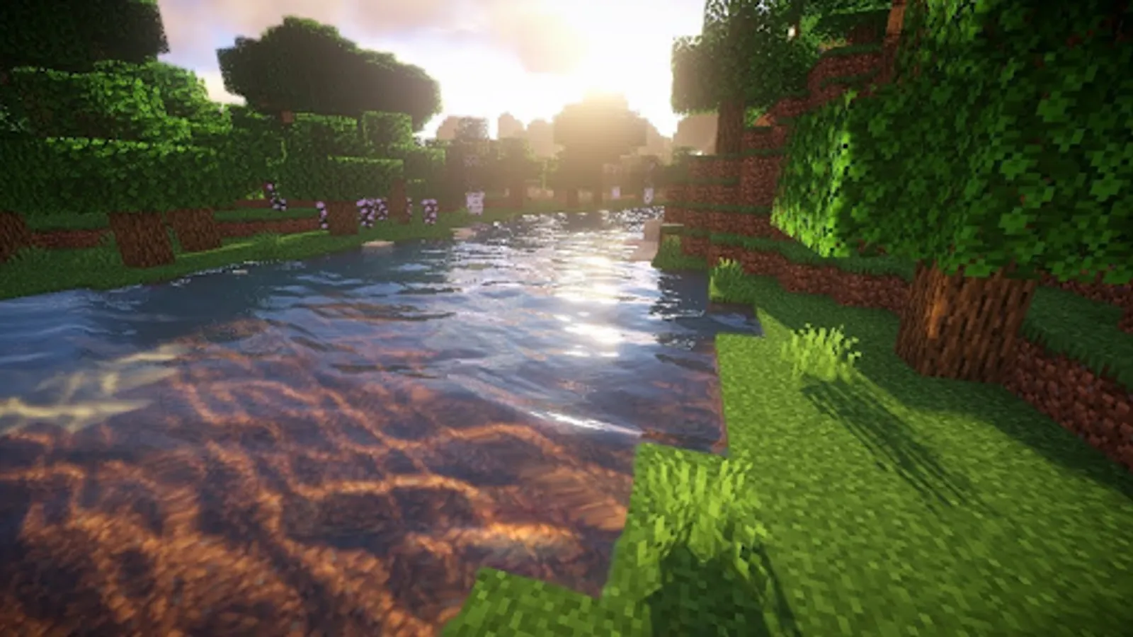 Try real water textures, realistic sun, moon, realistic sky and clouds by installing shaders for Minecraft Bedrock Edition: