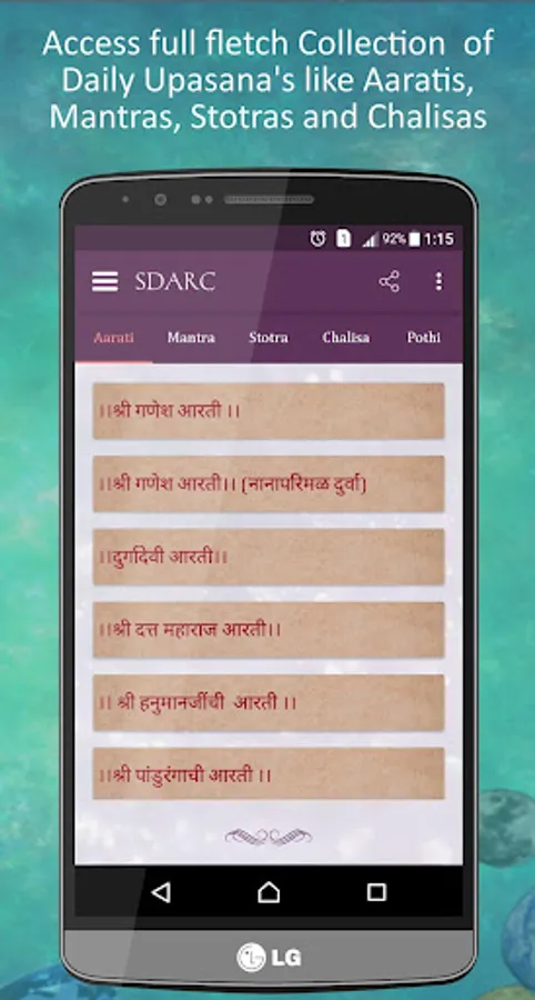 Users can take benefit of app for day to day devotional tasks, as Horoscope, Upasana Sangraha and many more features are freely available and easily accessible in app.