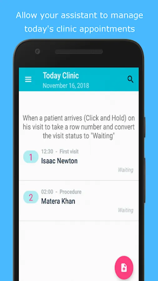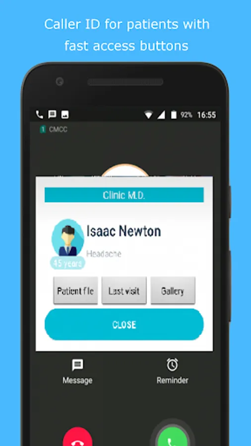 you will get a caller id with his basic info & latest diagnosis and fast access to his file, visits & gallery.