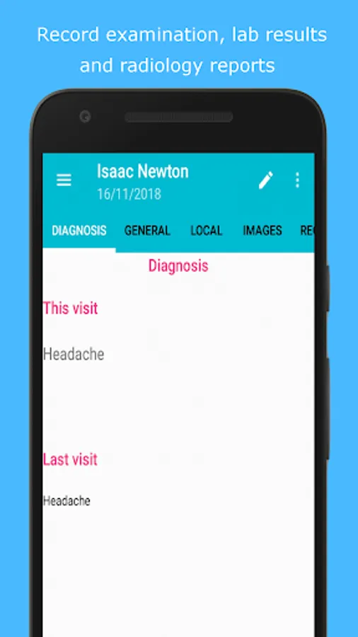 * Update your patient records with their examination, lab results, radiology reports & recent images in every visit.