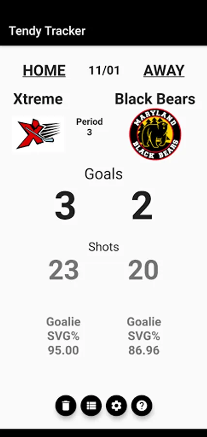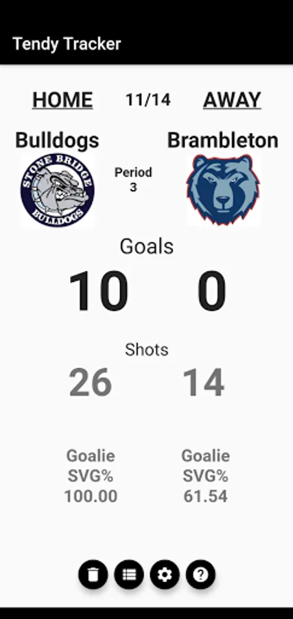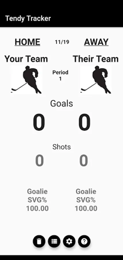 Tendy Tracker allows you to record shots and goals (including time and type of goal) for ice hockey goalies. You can also set team names and logos.
