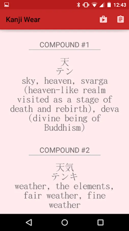 Daily Kanji Mobile&Wear let you see informations about a kanji everyday both on your mobile phone and your android wear device!