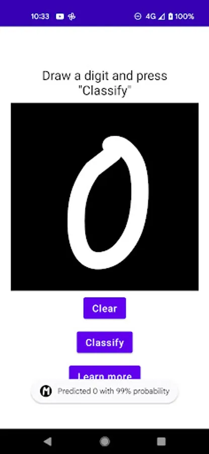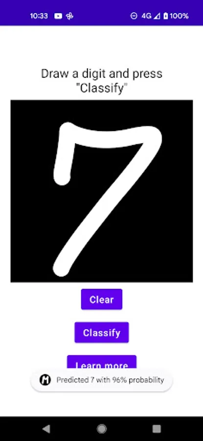 Sample app that classify a single digit using a convolutional neural network trained with tensorflow on google colab and exported to android in the tensorflow lite format.