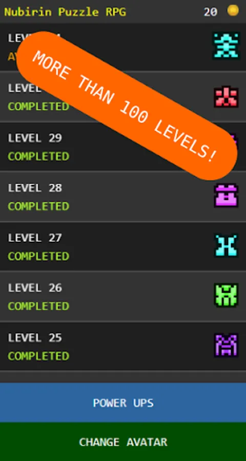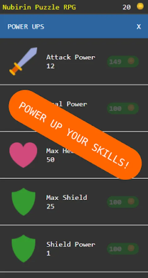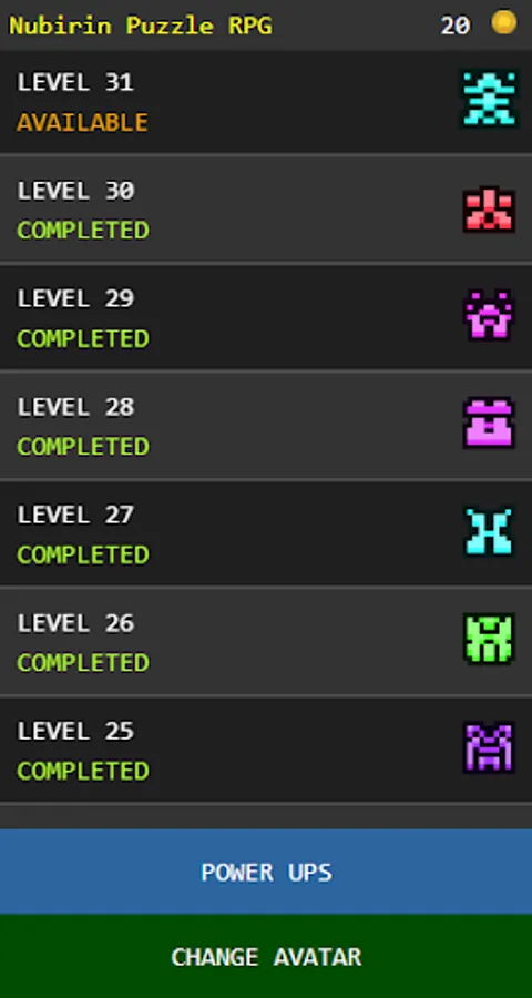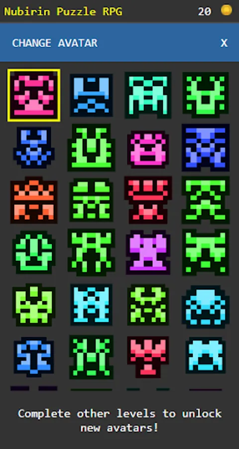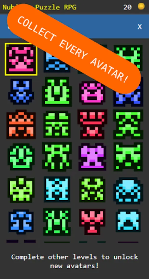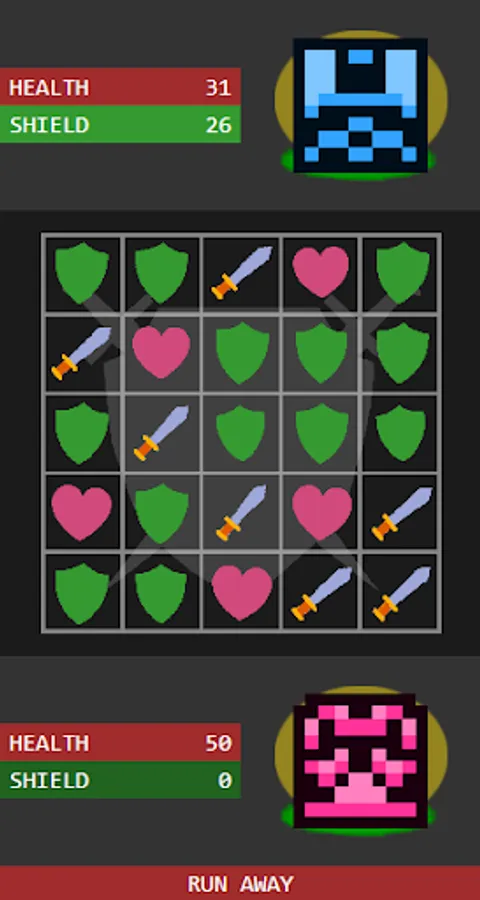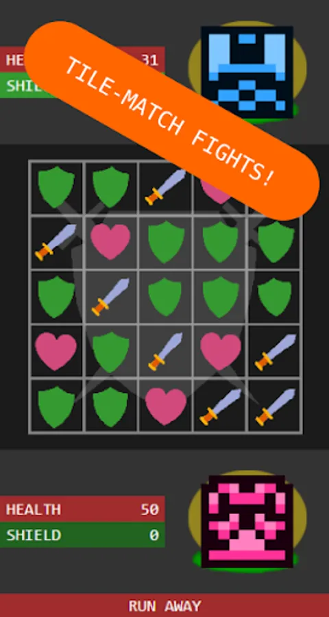 Combat cute pixel art creatures in a tile-matching round, gain coins and use them to increase your power. Defeated creatures can be used in combat!