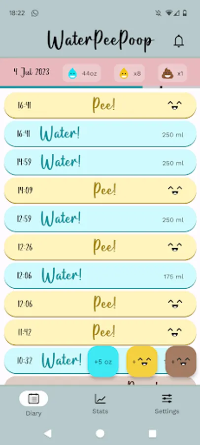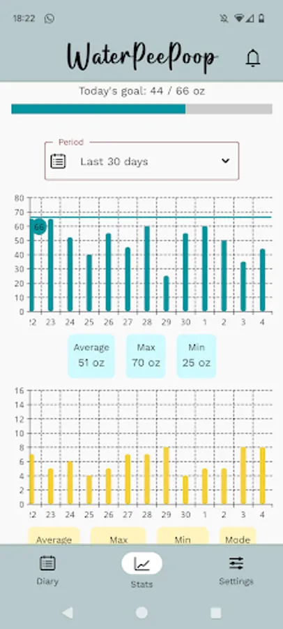 But that's not all - WaterPeePoop goes beyond tracking and offers an array of fantastic features. Explore the statistics section and dive into colorful graphs that showcase your progress over different time periods. Unlocking the full potential with our premium version allows you to delve deeper into advanced statistics and insights. 📊📈