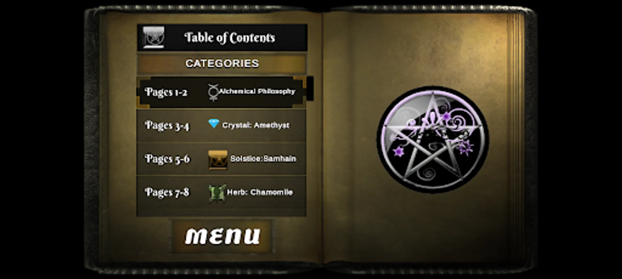• Achievements unlock new pagan items to use, like new book of shadows themes, stickers etc.