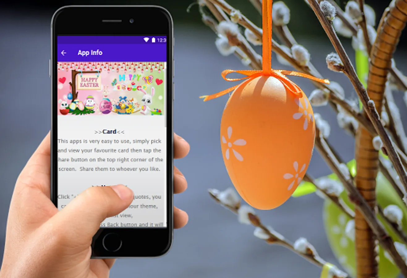 Presenting Happy Easter app! Easter is by far the most important celebration for all Christians and is a very special time indeed. Happy Easter Greeting Cards provides users with only the best selection of happy Easter wishes and messages this Easter. You can share these greeting cards with your friends and family as well.