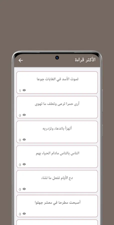 The application allows the user to browse the poems and poetry of the Imam, as well as browse the review of the poems most liked and read.