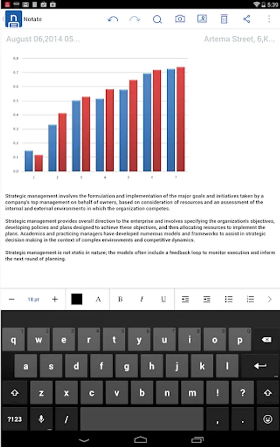STAY FOCUSED, GET WORK DONE. Notate helps you get organized and stay productive. Start by capturing all your important information. With Notate you can quickly create notes and tasks, edit notes with a rich text editor, take pictures, easily insert images, and attach audio recordings to individual notes.