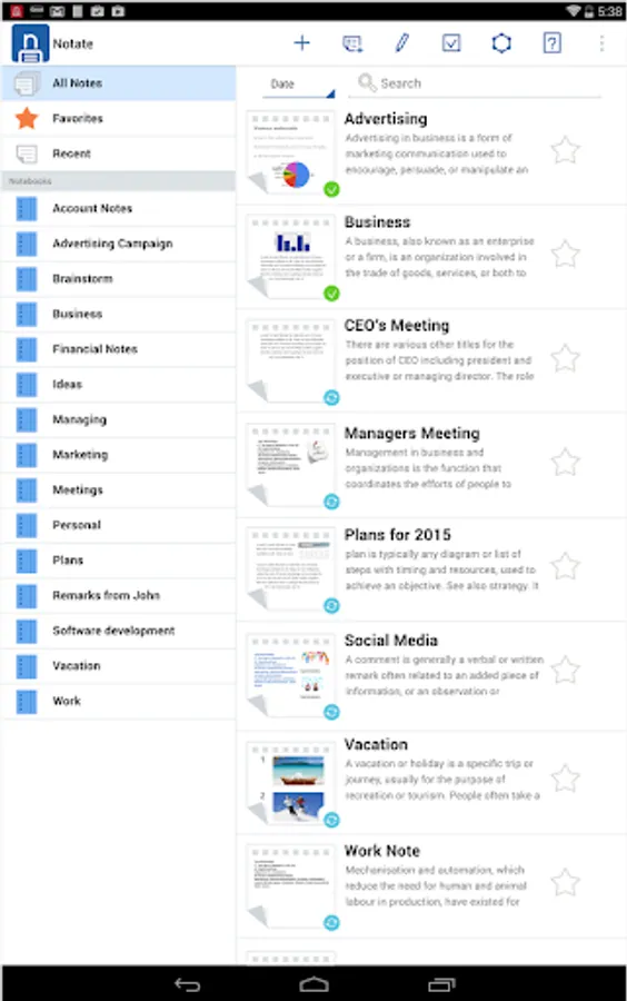 FIND YOUR INFORMATION QUICKLY by organizing your notebooks like folders. Notes and tasks are searchable. Easily search across all notebooks or search for text within notes. The Notate preview mode provides users a quick glance into the note subject matter. Notes are supported with “star” tagging as favorites and most recent edited notes are visible at all times.