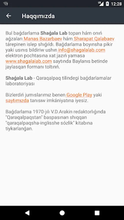 Sozlik ashıq derekli baǵdarlama esaplanadı, deregin mına jerden tabasız: https://github.com/shagalalab/sozlik-android