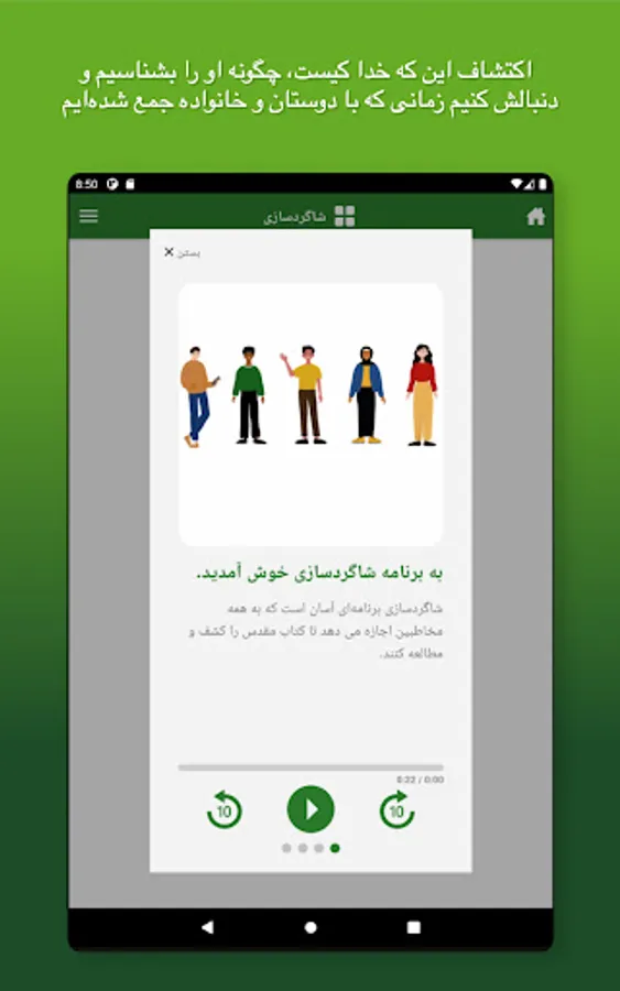 In discipleship, with the help of a text and audio guide that includes Bible verses, your small group will experience valid, simple, and vivid patterns of living as disciples of Jesus. In fact, as you care about each other, you discover God's rules and practices, you practice what you discover, you experience and share God's presence with others, you help others form groups, and so on. Grow together.