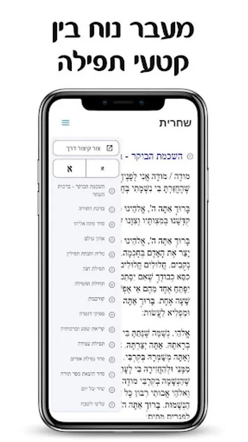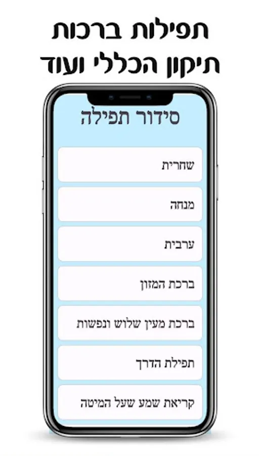 In addition, in the application you will find the text of morning prayers, Mencha and Arabic prayers, the blessing of food, the blessing of Ma'in Shelush, the prayer of the way, the reading of the Shema on the bed, the blessing of Asher Iszer, the blessing of the whitewash, the order of setting aside donations and tithes, the chapter of poetry, the general correction and more
