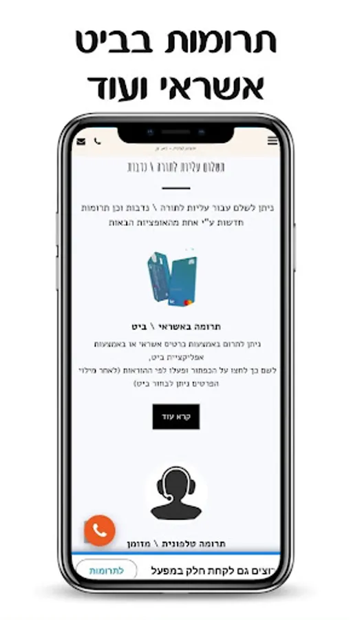 In addition, you will be able to make a payment for Torah / vows in a way that is convenient for you, through a credit card securely, or through the Bit application.