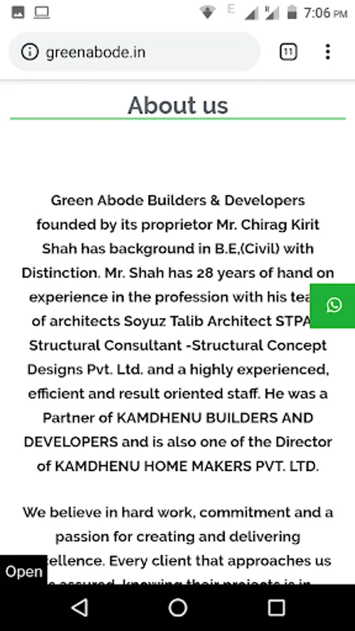 Green Abode Builders & Developers founded by its proprietor Mr. Chirag Kirit Shah has background in B.E,(Civil) with Distinction. Mr. Shah has 28 years of hand on experience in the profession with his team of architects Soyuz Talib Architect STPAL, Structural Consultant -Structural Concept Designs Pvt. Ltd. and a highly experienced, efficient and result oriented staff. He was a Partner of KAMDHENU BUILDERS AND DEVELOPERS and is also one of the Director of KAMDHENU HOME MAKERS PVT. LTD.