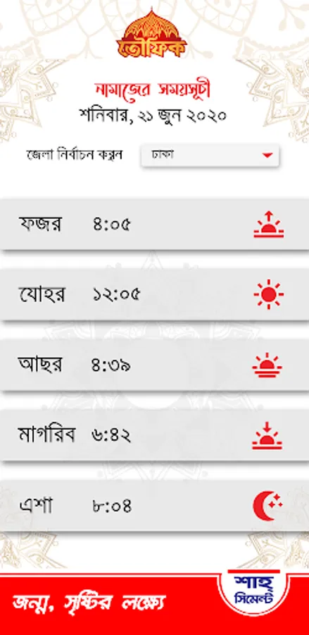 - জেলা ভিত্তিক নামাজের সময়সূচী