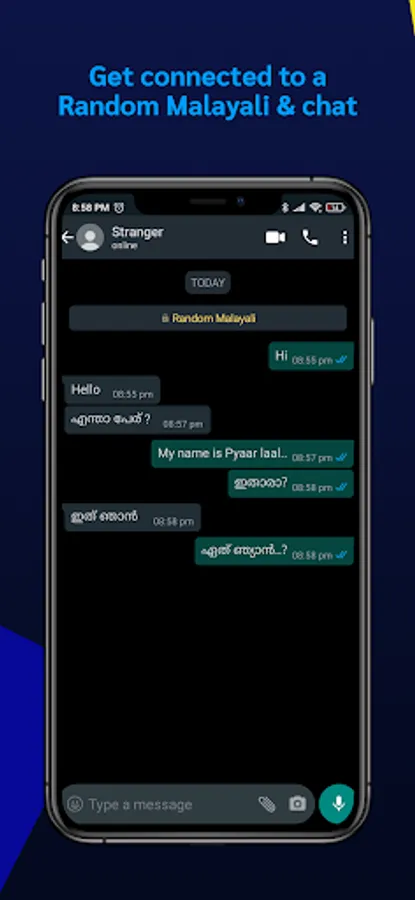 This is a Malayalam chat app in which you can chat with complete strangers without revealing your identity.