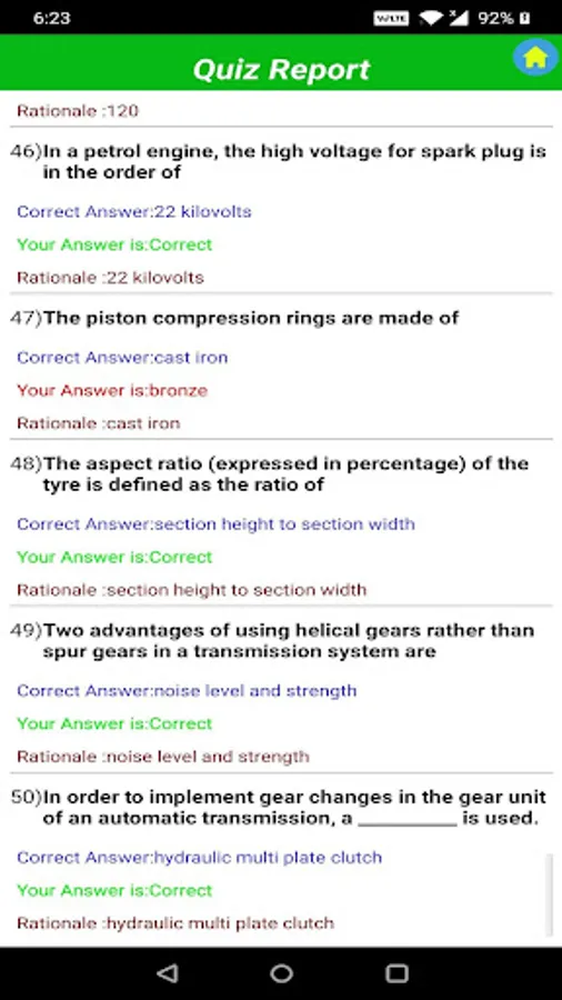 Detailed Quiz results & Quiz Review for your best practice