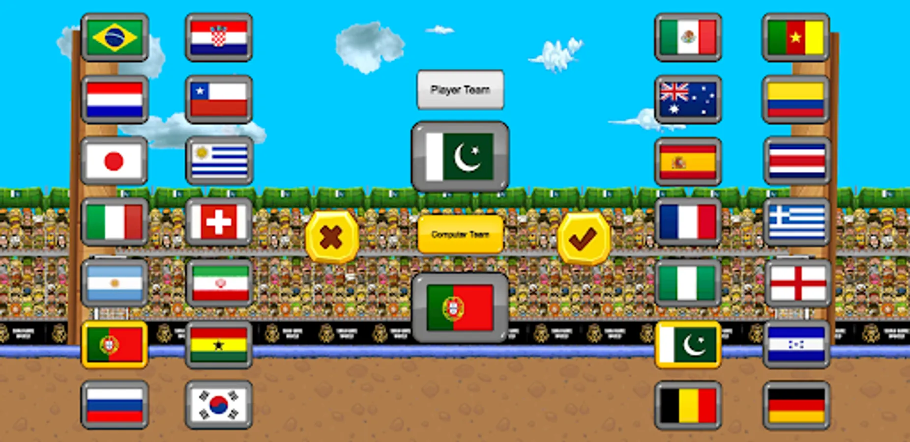 Exciting soccer game with 28 countries and a variety of players to choose from each country