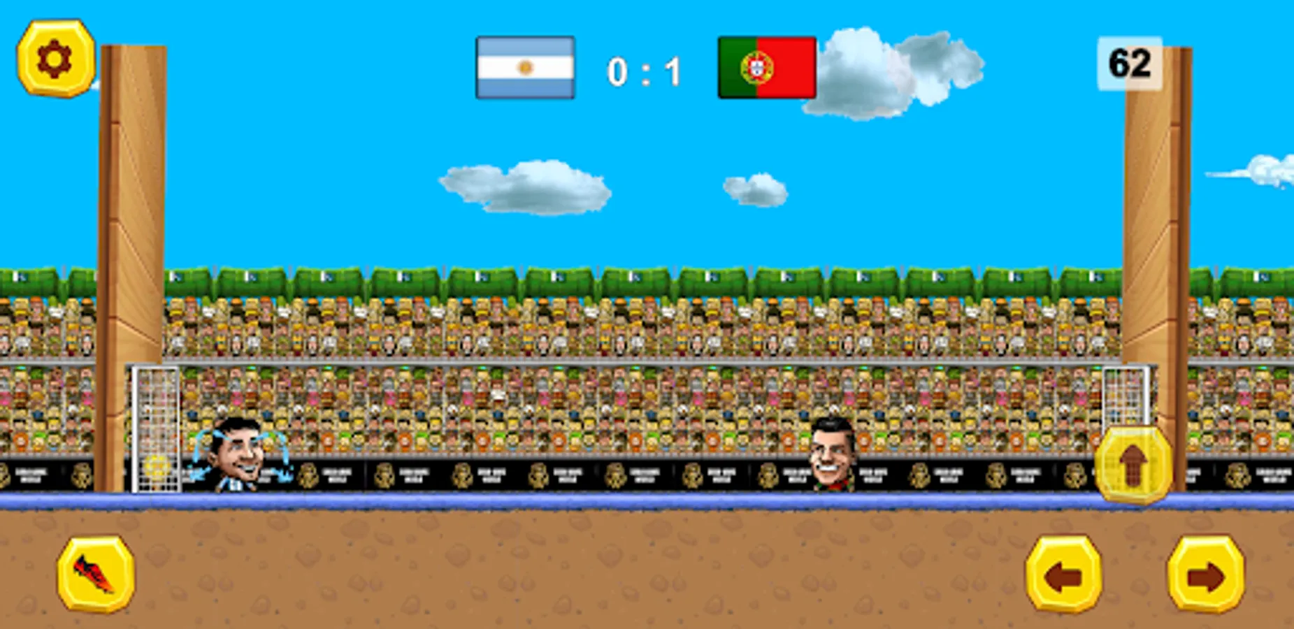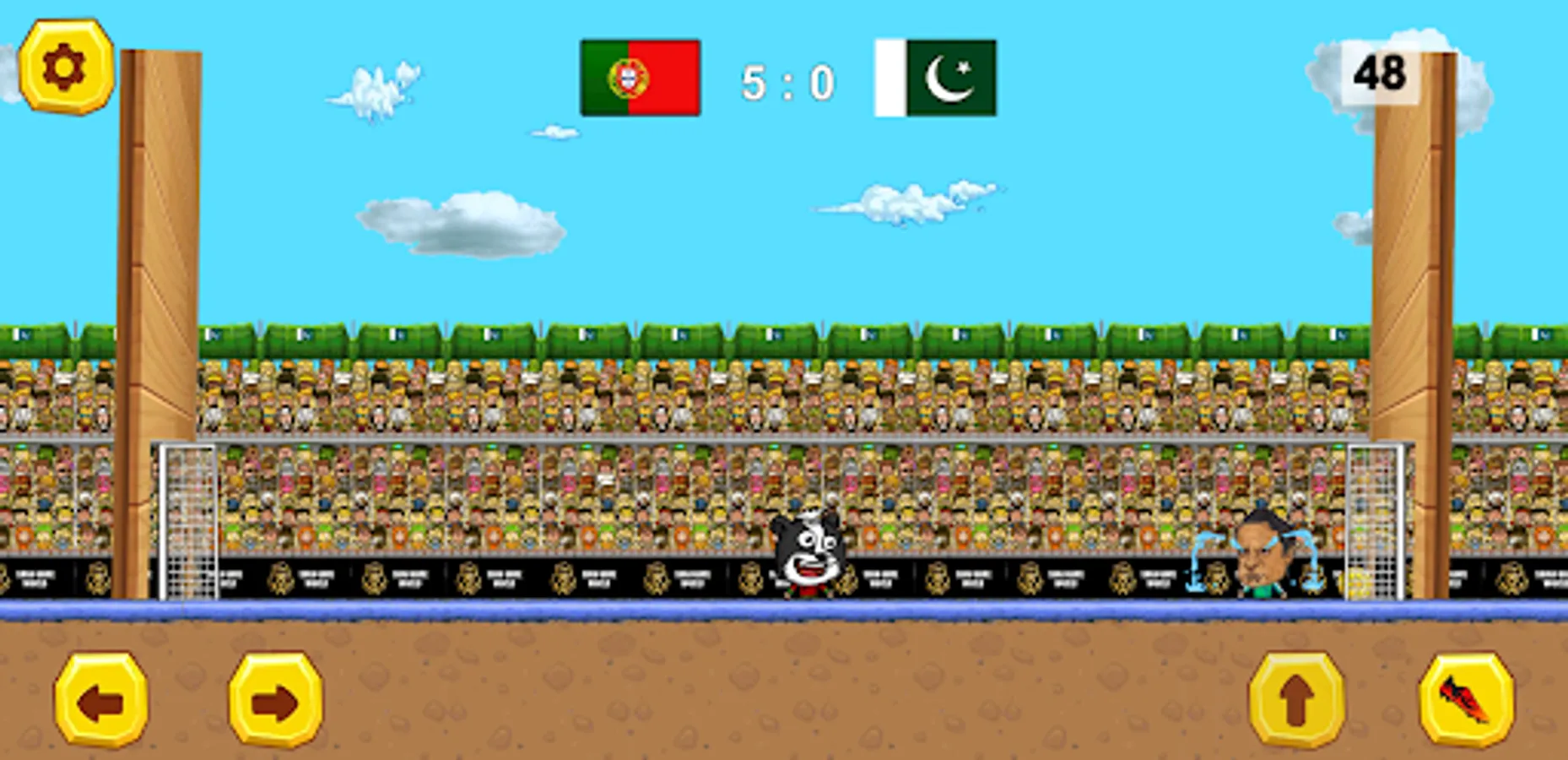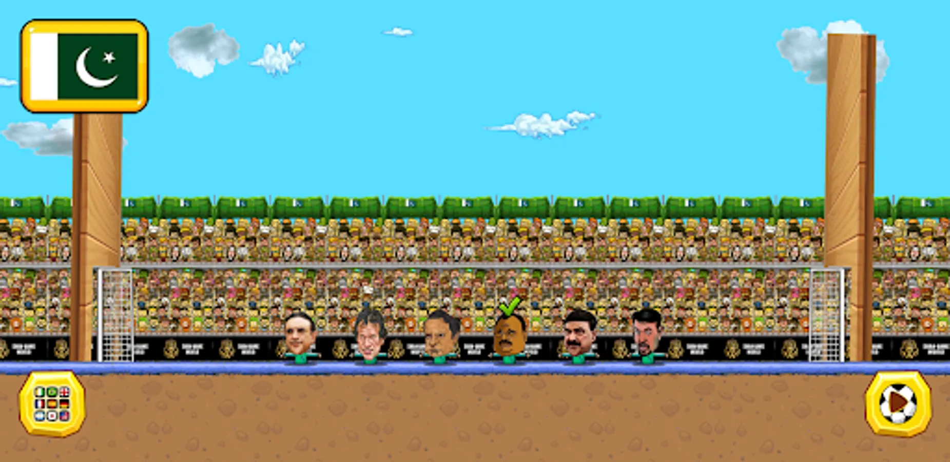 Soccer players game with 70+ cartoon marionette star players with funny big heads