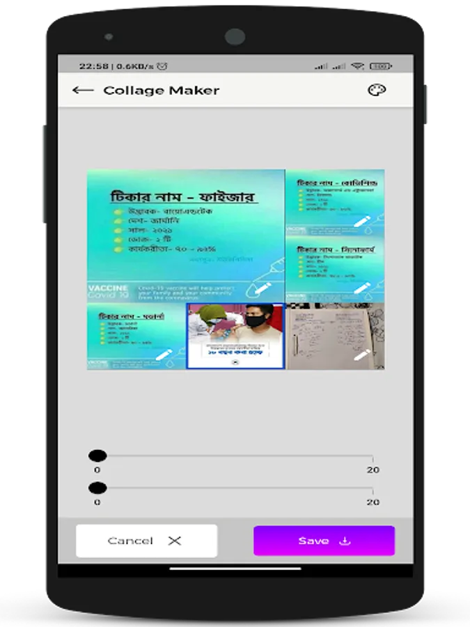 Create photo collages easily with a variety of preset collages, grid style, customized ratio, and background color.