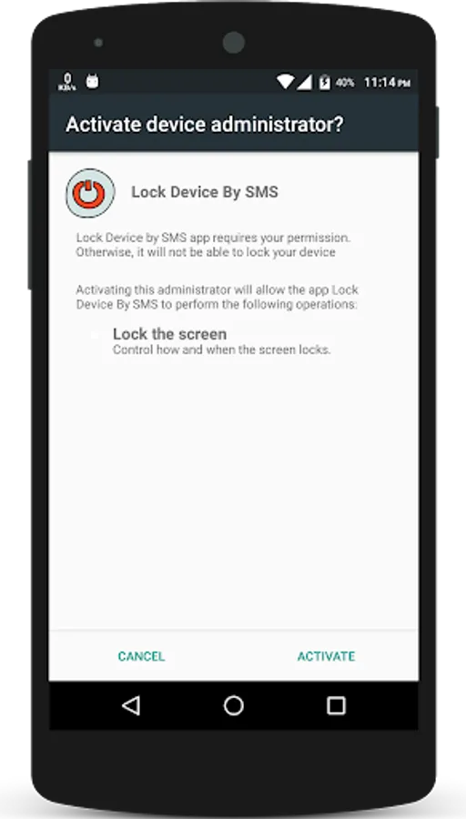 For locking device automatically by sending a simple SMS with the message it's also requires that One click for turn off your device screen and lock device without pressing power button. it's need to received a special SMS which you set as a default. only receiving this special SMS from a specific mobile number your device locking mechanism will be activated and at the moment lock you device remotely otherwise it's not to work..for this we need 2 permission.