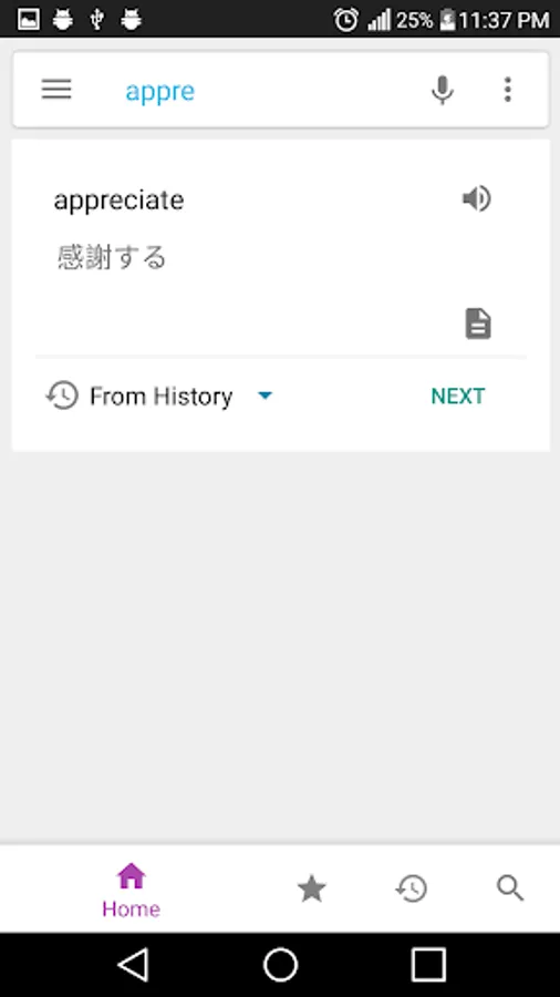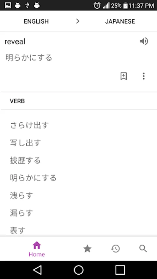 Listen how to pronounce the word.This feature works only when Text to Speech Engine and target language voice data installed.