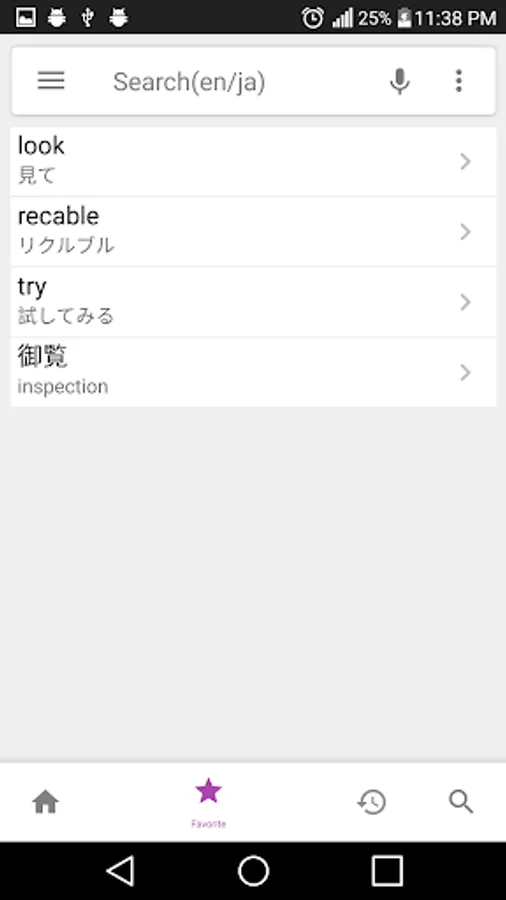 Search English and Japanese words from offline to get meaning instantly and Learn words easy way. English <> Japanese Dictionary featured with Word searching from offline, Word suggestion based on prefix matching, Bookmarking words, Word pronunciation, Backup & Restore bookmarked words, Tap(Copy) to Search word.