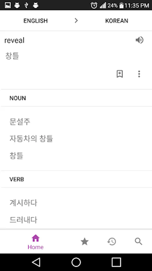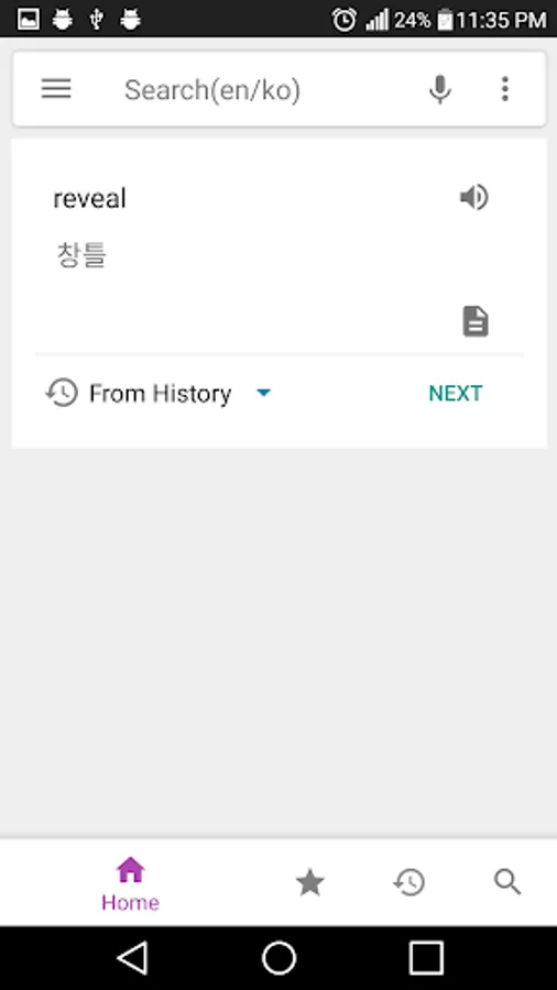 Listen how to pronounce the word.This feature works only when Text to Speech Engine and target language voice data installed.