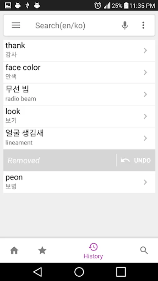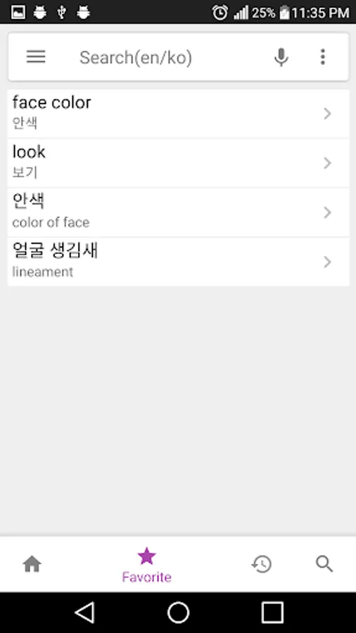 Search English and Korean words from offline to get meaning instantly and Learn words easy way. English <> Korean Dictionary featured with Word searching from offline, Word suggestion based on prefix matching, Bookmarking words, Word pronunciation, Backup & Restore bookmarked words, Tap(Copy) to Search word.