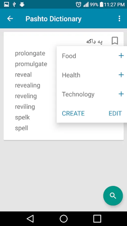Create any number of favorite groups to keep Favorite English and Pashto word within those favorite groups. A favorite group virtually creates a folder where you can organize your favorite word into different bucket.