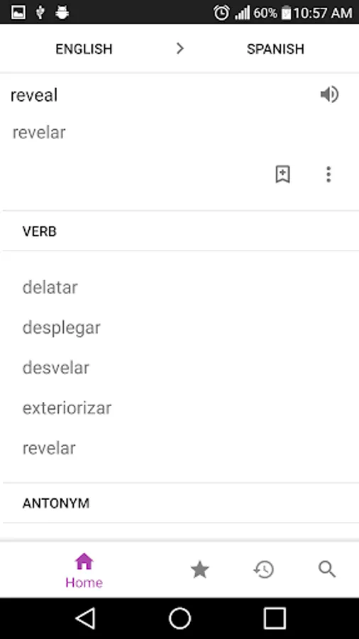 Listen how to pronounce the word. This feature works only when Text to Speech Engine and target language voice data installed.