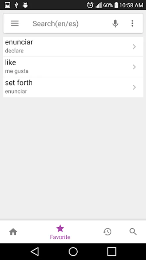 Search English and Spanish words from offline to get meaning instantly and Learn words easy way. English <> Spanish Dictionary featured with Word searching from offline, Word suggestion based on prefix matching, Bookmarking words, Word pronunciation, Backup & Restore bookmarked words, Tap(Copy) to Search word.