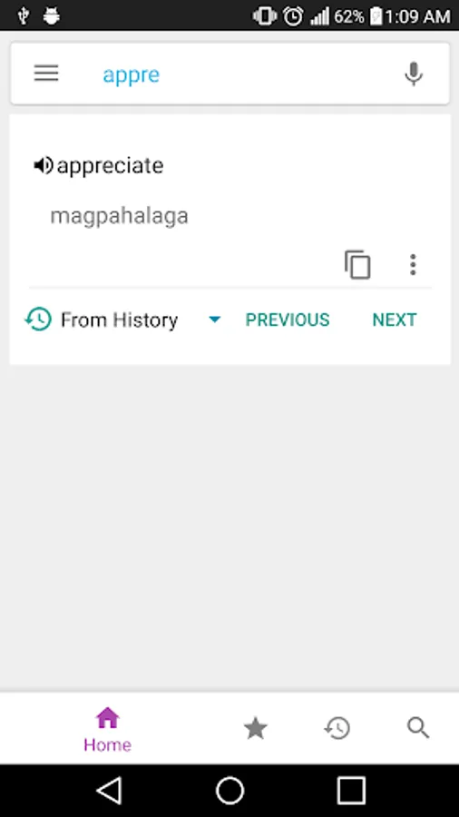 English to Tagalog Dictionary (English <> Tagalog Dictionary) is fully offline. Search English and Tagalog Words to find out meaning. When typing Text, prefix matched words will be shown. The search result will be populated with both Tagalog and English words and it will be automatically updated depending on search text change. Get meaning from any other application by just copying text. It contains more than 16,000 English and 18,000 Tagalog words. You can mark words as favorite. It also supports Favorite word backup and restore.