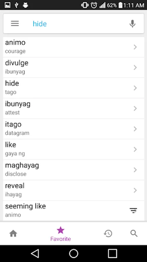 Mark English and Tagalog words as favorite to read these words later easily.