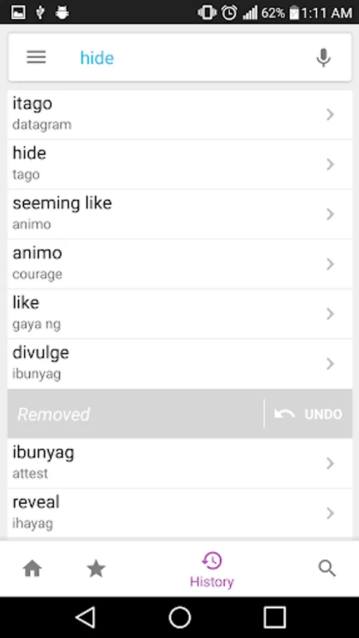 Tagalog and English word search within this dictionary is very fast so it shows prefix matched words instantly as you type.
